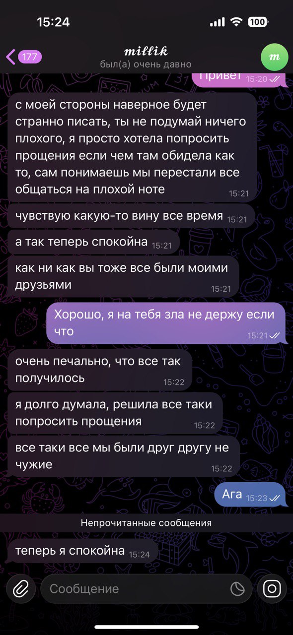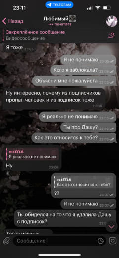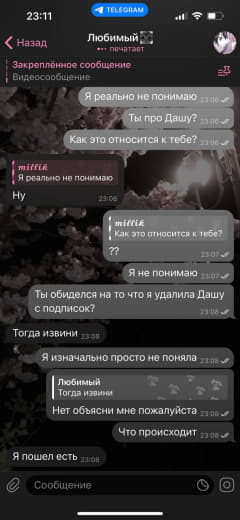 Соня приехала в Тобол и ничего мне не сказала, что приедет. Она типа с Юлей договорилась, что у неё останется. Меня это выбесило, потому что она мне даже не написала об этом. Мне неприятно было, и я с ней не поздоровалась тогда, они ушли и я с вами пошла гулять. Она мне всю дорогу писала, типа че за хуйня, хули я не поздоровалась с ней, я ей сказала, что она ничего мне не сказала. Потом на следующий день они меня позвали в Костанай, типа погулять и все дела. Я спокойно сказала, что я не хочу и денег у меня щас нет. Они начала истерику закатывать, что я свой характер показываю. Я спокойно им объяснила, они начинают нахуй этот цирк устраивать, меня это только больше бесит. Они мне сказали, что общаться со мной не будут, заблокали меня. Сонька уехала, Юля меня заблокала, конечно, Сони нет, теперь Даша нужна. Пусть идёт нахуй, раз она со мной не общается, пусть соответствует. Я за ней бегать никогда не буду, не нравится что-то – нахуй пусть идёт. Раздражают суки